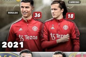 2021年,C罗、卡雷拉斯一同效力曼联