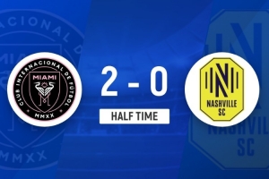 半场-迈阿密国际暂2-0纳什维尔 梅西弧顶位置梅开二度