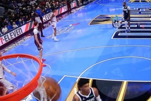 游刃有余!杨瀚森卡位再收板 进攻端弧顶妙传送队友扣篮!
