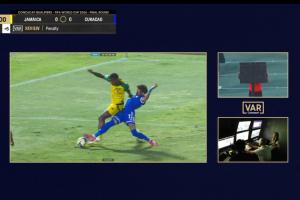 体育资讯11月19日讯 世预赛中北美及加勒比海预选赛第三阶段收官战,牙买加vs库拉索,牙买加第95分钟获得点球!裁判查看回放取消点球。